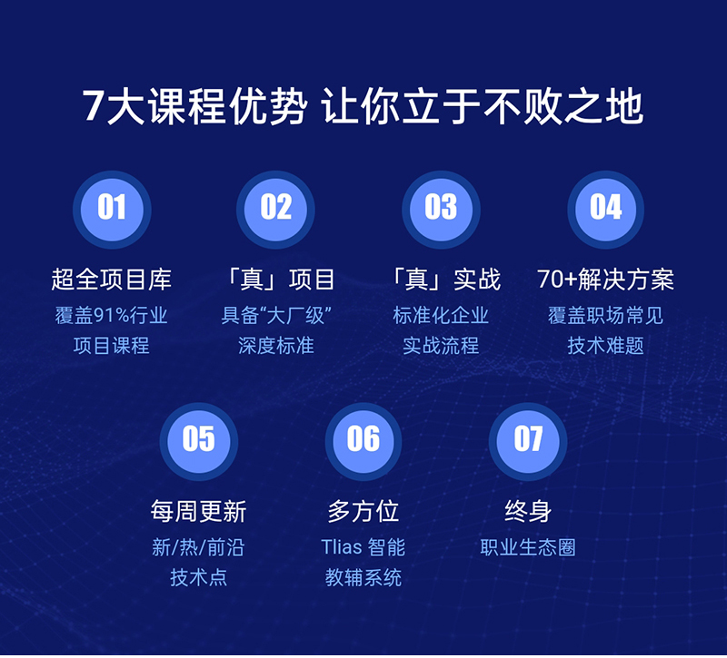 课程优势: 零基础,18周岁(含)以上人士,适合应往届毕业生、在职提升、转行或待业等有志于进入IT软件行业发展的人群