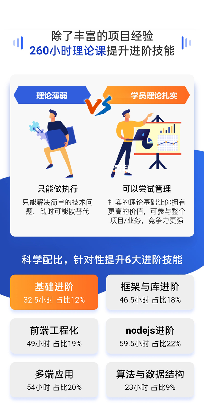 培养目标:具有1-2年前端开发经验的,能符合企业用人需求的WEB开发工程师