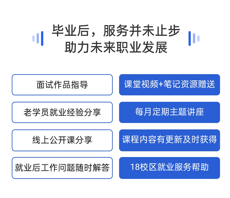 适学人群:零基础,18周岁(含)以上人士,适合应往届毕业生、在职提升、转行或待业等有志于进入IT软件行业发展的人群