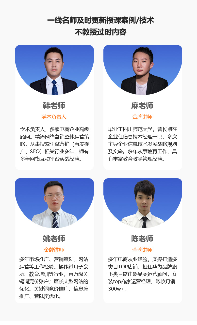 课程优势: 零基础,适合应往届毕业生、在职提升、转行或待业等有志于进入IT、互联网、电商行业发展的人群