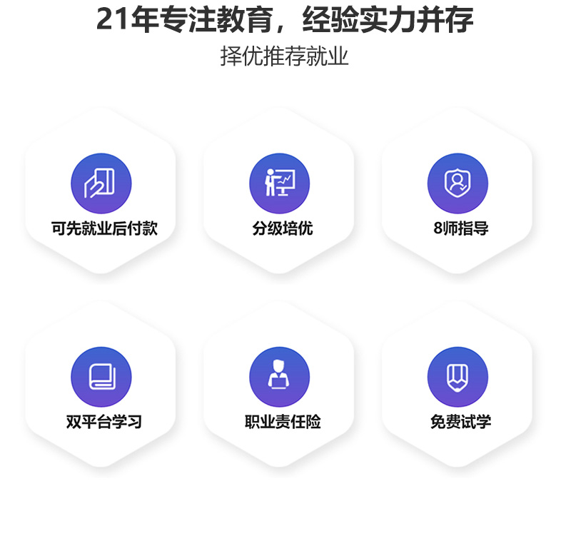 适学人群:零基础,适合应往届毕业生、在职提升、转行或待业等有志于进入IT、互联网、电商行业发展的人群
