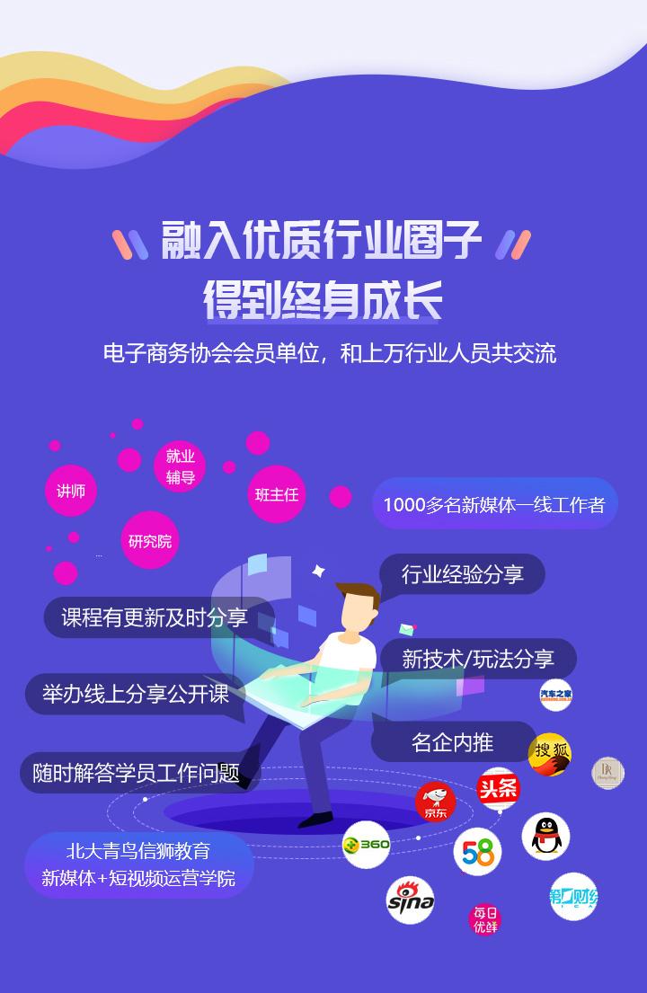 课程优势: 零基础,18周岁(含)以上人士,适合应往届毕业生、在职提升、转行或待业等有志于进入互联网行业发展的人群