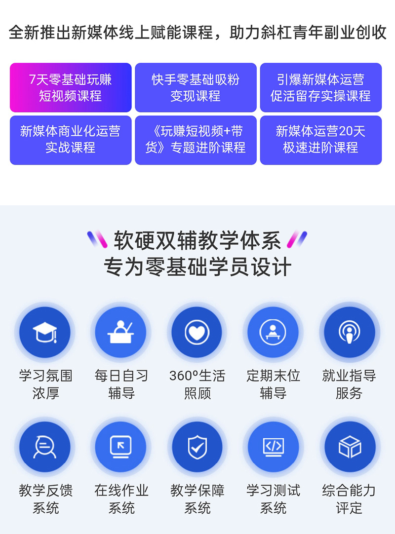 课程优势: 零基础,适合应往届毕业生、在职提升、转行或待业等有志于进入IT、互联网、市场运营行业发展的人群