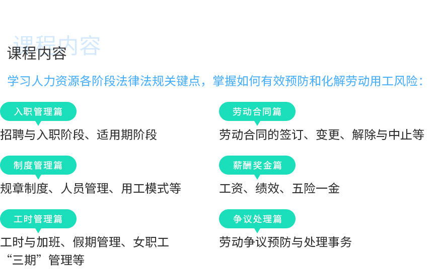 随着新常态市场化改革的进行,受经济结构调整及经济全球化的影响,我国劳动关系呈现日益多样化和复杂化的趋势,同时,劳动者法律意识和维权意识普遍增强。这要求用人单位必须提高和加强企业的管理层和人力资源部门处理相关劳动法律事务的能力和技巧,重视劳动关系管理的法律风险管控问题。 人力资源管理向人力资本管理的时期已经到来,跨界时代的HR需要加载许多职能,如HR+BP、HR+Law等 ,劳动关系将成为企业的立足之本,大量的企业对的综合能力要求更高。 HR+L AW是重要的职业发展趋势之一。