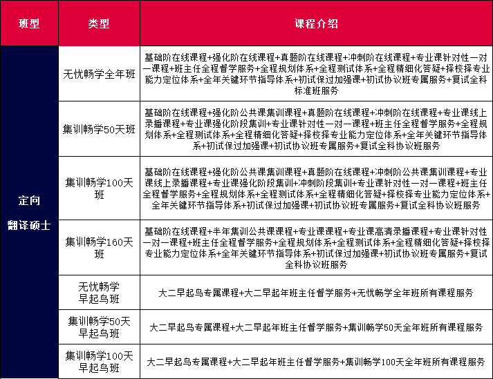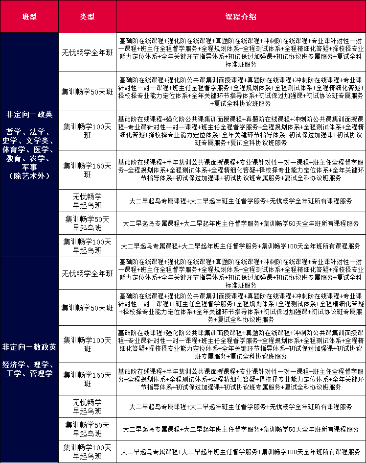 基础阶在线课程+强化阶在线课程+真题阶在线课程+冲刺阶在线课程+专业课针对性一对一课程+班主任全程督学服务+全程规划体系+全程测试体系+全程精细化答疑+择校择专业能力定位体系+全年关键环节指导体系+初试保过加强课+初试协议班专属服务+复试全科标准班服务